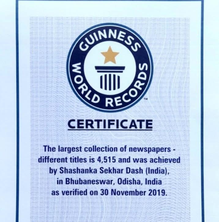 This record was officially recognized by Guinness World Records, confirming that Dash possesses the largest collection of newspapers with different titles in the world.